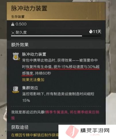 除了生命值的恢复,脉冲动力装置还能显著提升玩家的移动速度,在被落雷击中后,玩家的移动速度将立即增加15%。不仅有助于玩家在危险环境中迅速撤离,还能在追击敌人或探索新区域时提供额外的机动性。