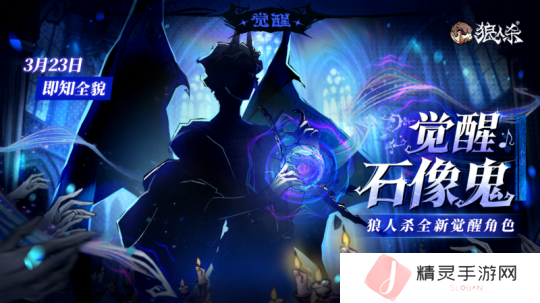 魔笛奏响,石像觉醒,狼人杀全新觉醒角色——觉醒石像鬼即将上线,角色剪影图正式曝光,3月23日即知全貌!诞生于教堂之上、洞悉人心的无名石像,将迎来怎样的惊喜蜕变呢?
